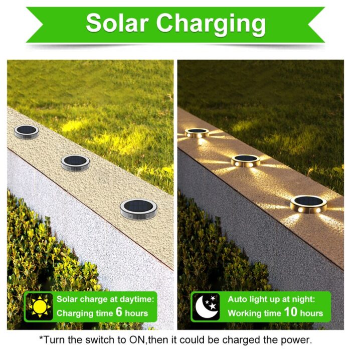 2.Widely Applications: Our solar ground light is consisting of 6LED beads, which means providing more brightness for your path. Can be used to decorate your garden,courtyard,parterre,lawn,stairs,pathway,swimming pool,patio,driveway,etc.