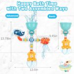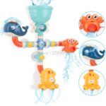 -Two versions: Junior (suitable for baby), standard (more ways to play, kid can assemble and play by themselves) -Standard: Multiple assembly methods.We provide a basic assembly method, more possibilities are waiting for you to discover -Three cute animals, whale spraying water, crab rolling out of water, octopus spinning out of water