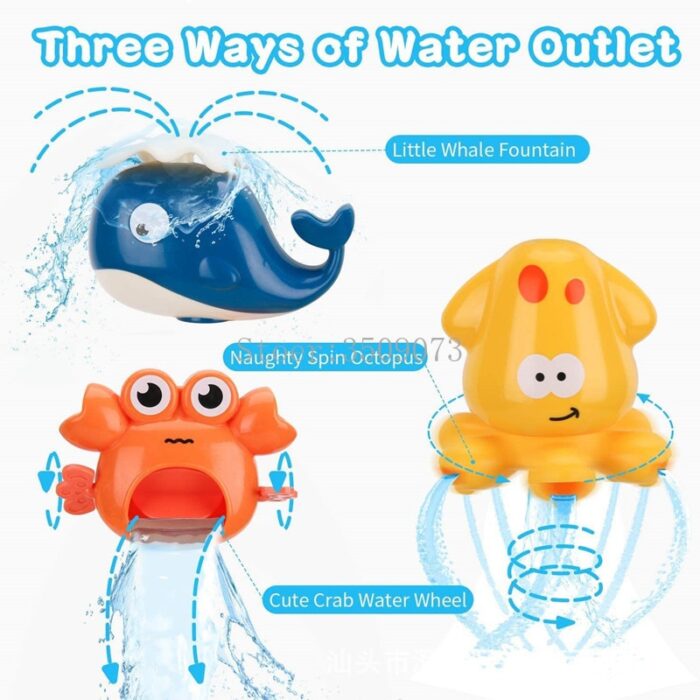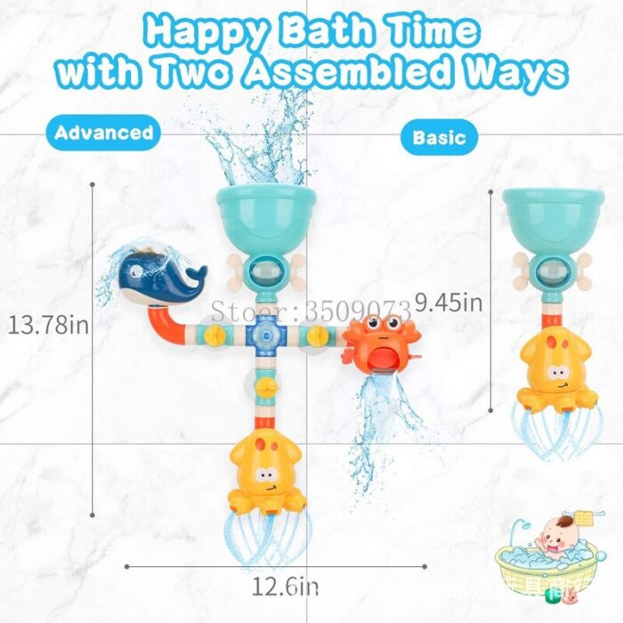 -Two versions: Junior (suitable for baby), standard (more ways to play, kid can assemble and play by themselves) -Standard: Multiple assembly methods.We provide a basic assembly method, more possibilities are waiting for you to discover -Three cute animals, whale spraying water, crab rolling out of water, octopus spinning out of water